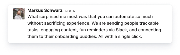 An overwhelming amount of emails won't turn onboarding into an experience. Messy spreadsheets won't drive continuous development. And dry online meetings are not enough to create human connections.