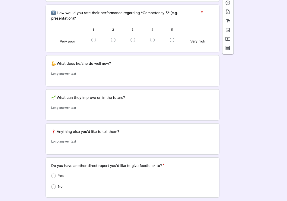 Create a 360 feedback system with this simple form you can send to anyone in the company.
