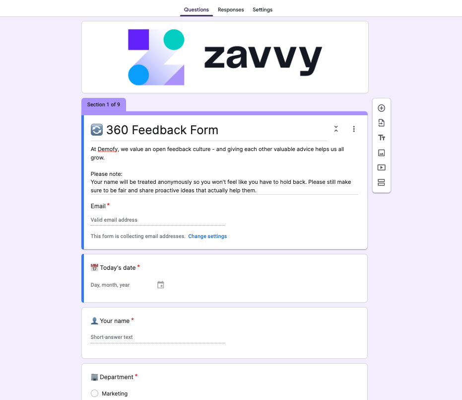 Create a 360 feedback system with this simple form you can send to anyone in the company.