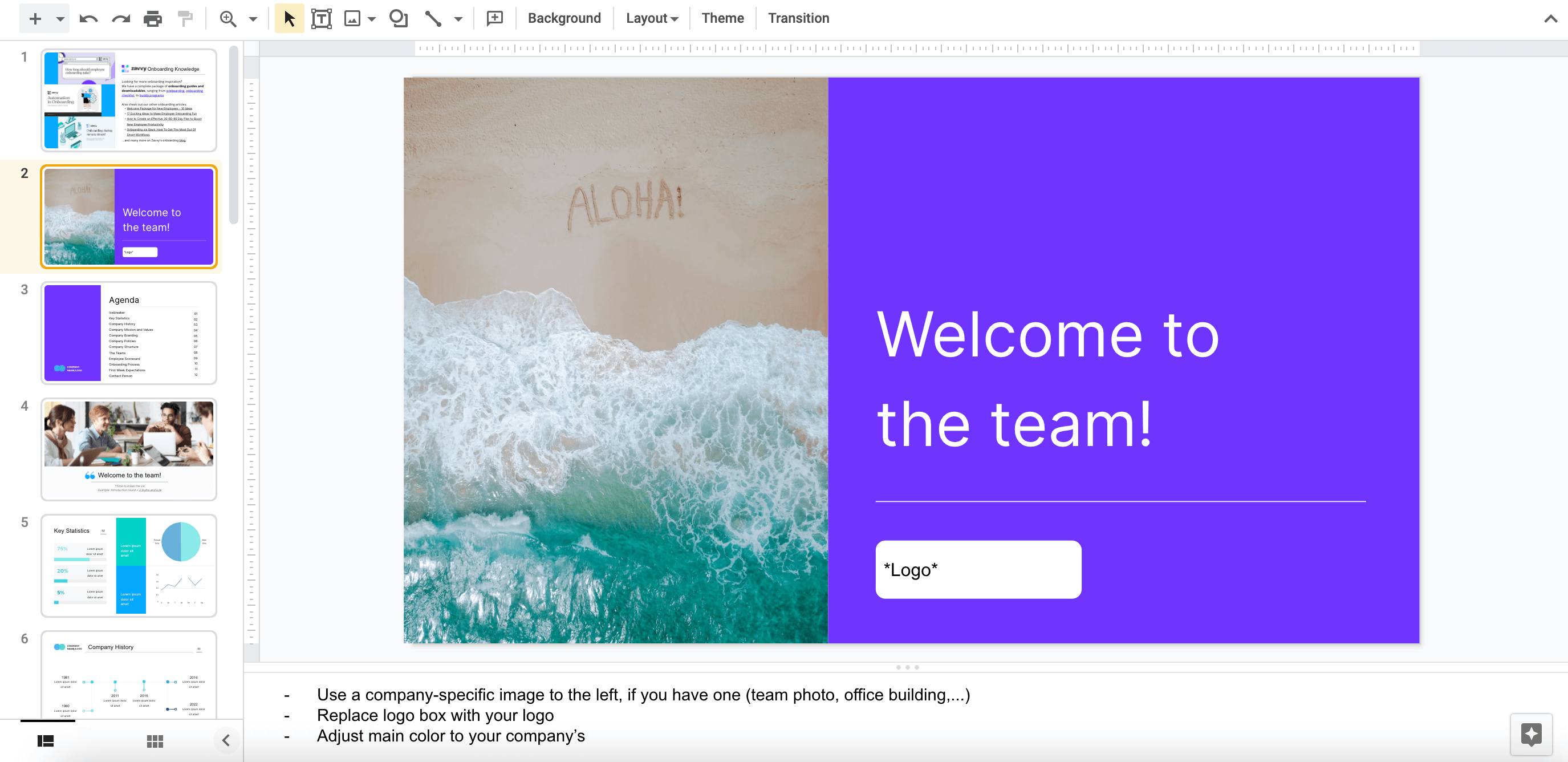 Obviously, you can (and should) fully customize it to your company, brand colors, and values.