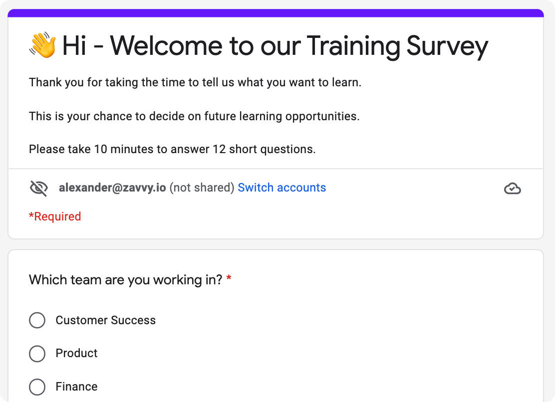 Save yourself the research time and launch this proven Google Forms survey at your company right away!