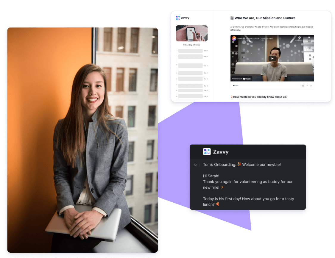 With Zavvy's workflow builder, you can easily structure and automate complex onboarding processes and give your new hires rich experiences from day one.